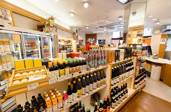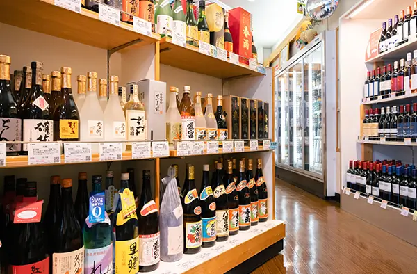 入り口入ってすぐ焼酎コーナーになります。 こだわりを持ち、選びに選んだ焼酎ばかりです。 滅多にお目にかかれない商品が店頭に出ているときも! さらに和歌山の特産品、 カネイワの醤油、角長の醤油、梅酒、金山寺味噌など、 いろいろな商品もおいています。